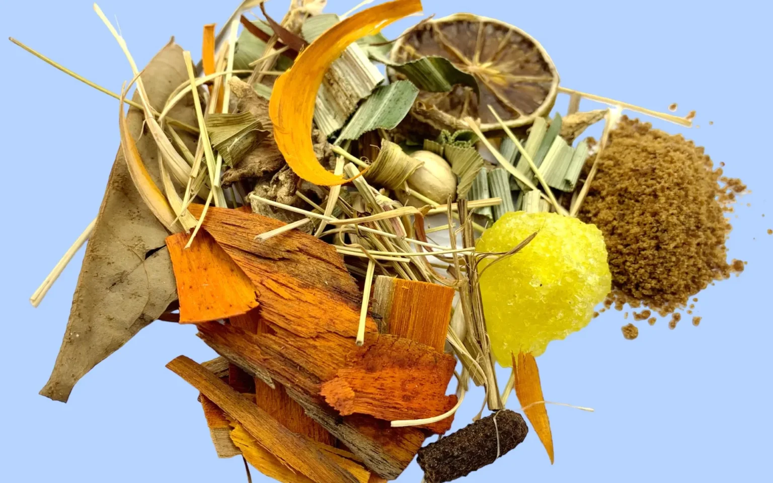 Racikan Jawa kami terdiri dari: Jahe merah, daun pala, daun pandan wangi, cengkeh, kapulaga, secang, kayu manis, sereh, dan jeruk nipis.